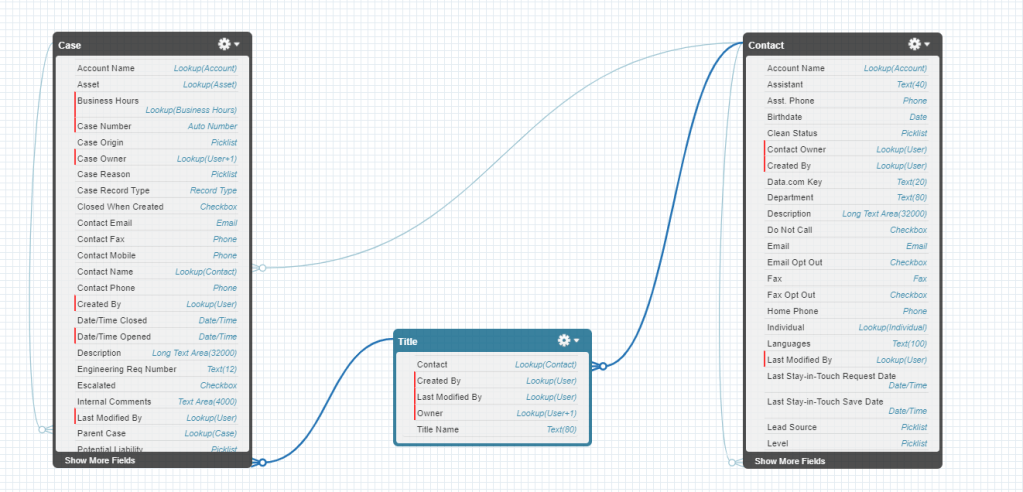 Note that there is a direct lookup to Contact from Case, but remember, we DO NOT want that contact related to these cases, because we don’t want them implicitly shared to that contact if they are a community member… So we need to send an email alert to the contact that is looked up on the Title that is looked up on the case, every time a case of a certain type is created from a button on the Title object.